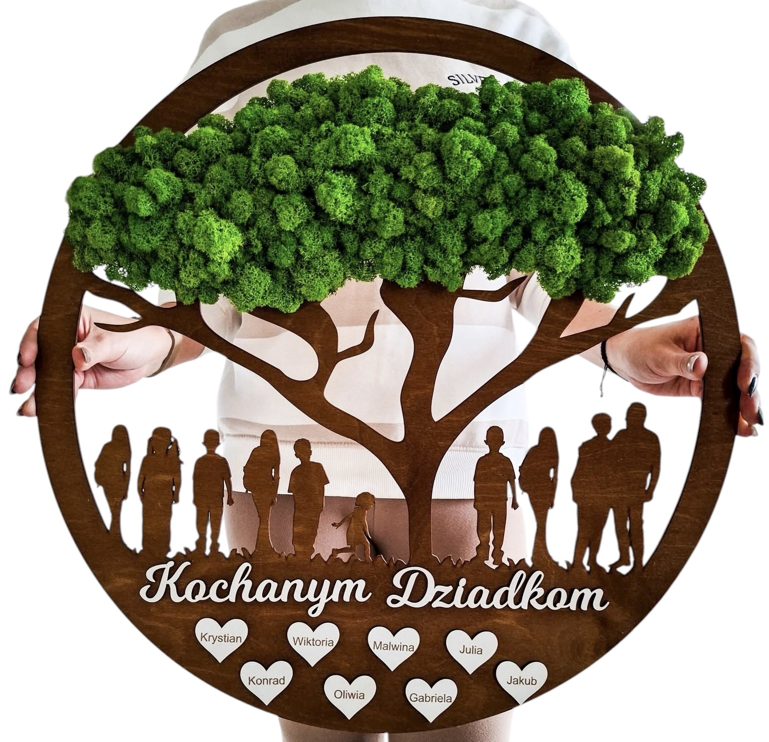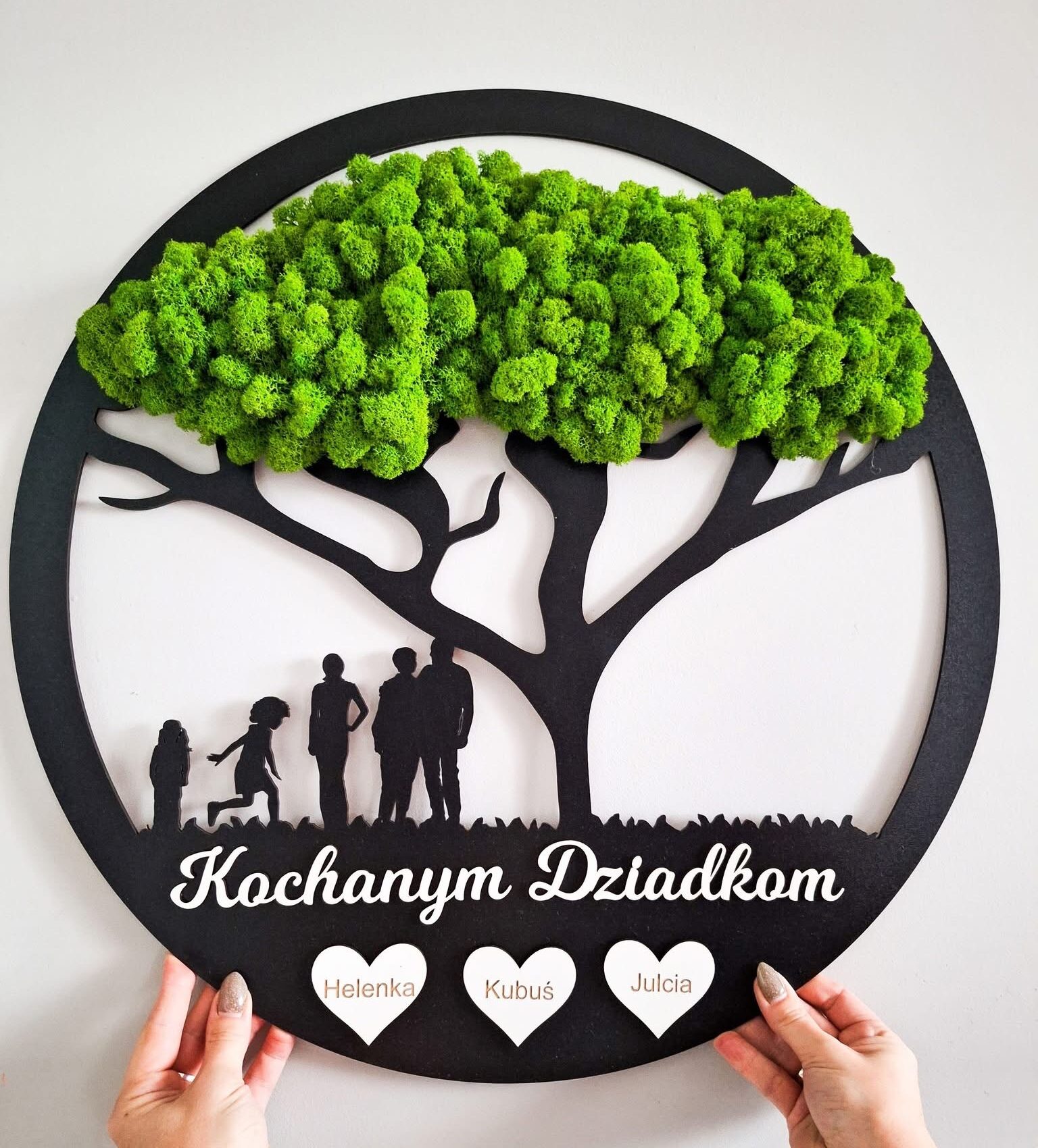 Stwórz własną, zieloną historię zamkniętą w drewnianym kręgu – obraz z chrobotka stabilizowanego z rodziną lub dziadkami to coś więcej niż dekoracja.