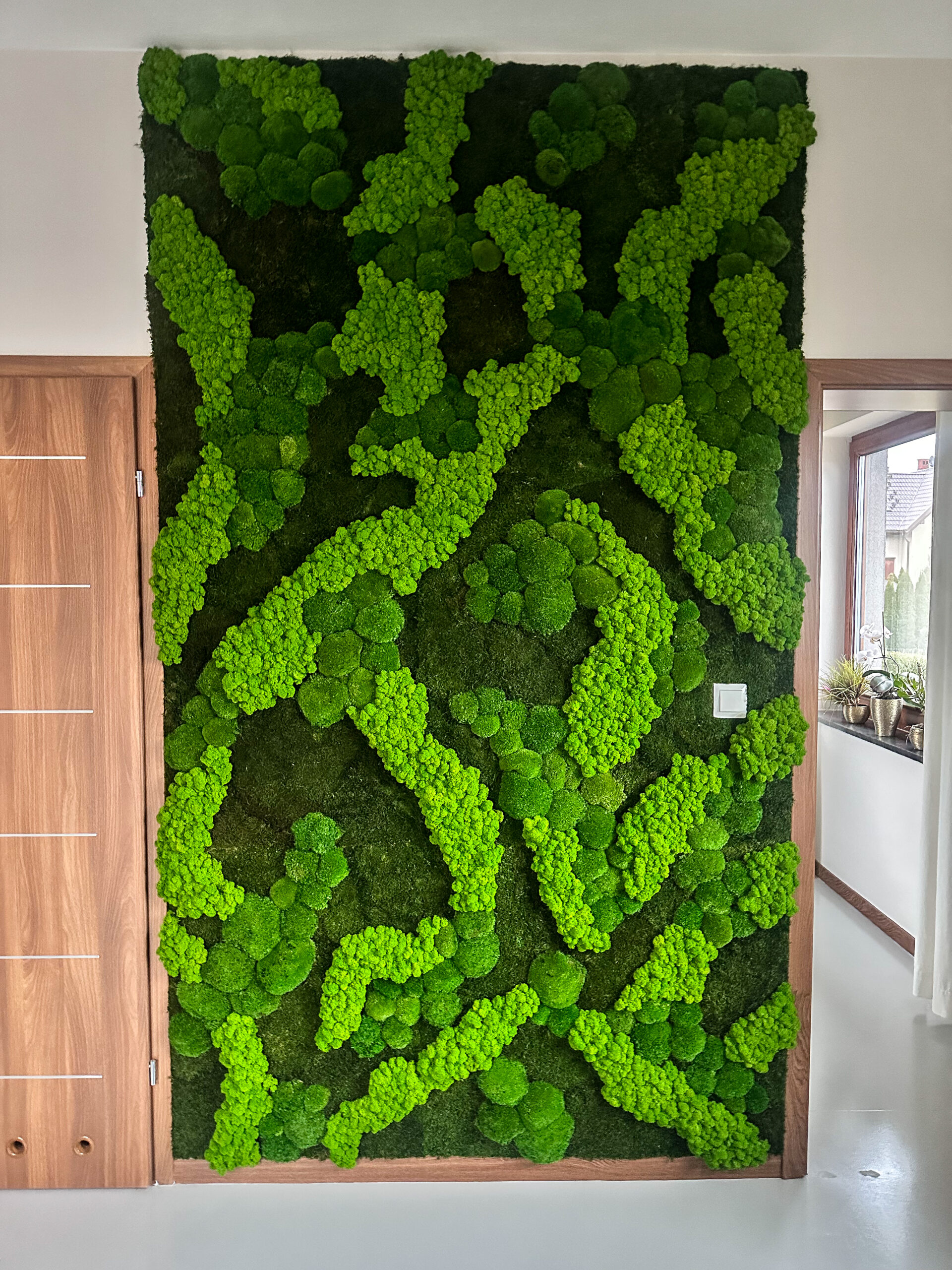 Szukasz efektownej, nowoczesnej dekoracji, która całkowicie odmieni Twoje wnętrze i jednocześnie nie będzie wymagała żadnej pielęgnacji? Panel z mchu stabilizowanego na wymiar to idealne rozwiązanie dla osób ceniących naturalny wygląd, design oraz wygodę. Połączenie chrobotka reniferowego, mchu płaskiego oraz mchu poduszkowego tworzy wyjątkową, trójwymiarową kompozycję, która przyciąga uwagę i nadaje przestrzeni elegancki, zielony charakter.