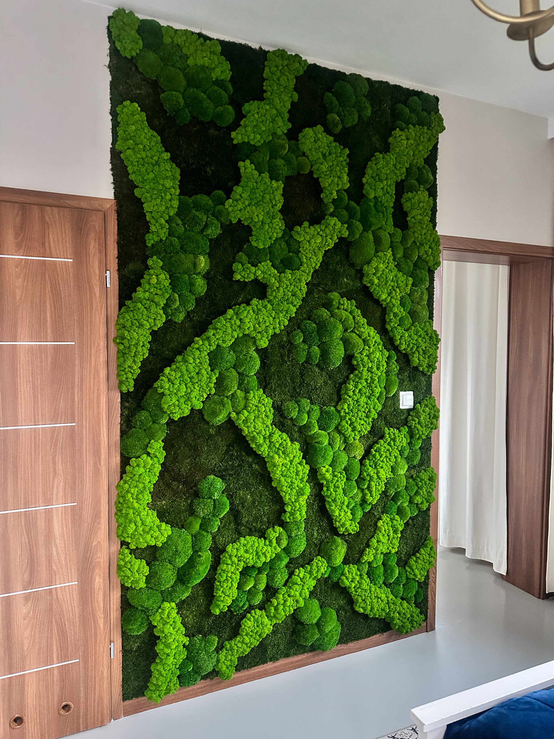 Każdy panel z mchu na wymiar wykonywany jest ręcznie, z dbałością o najmniejsze detale. To sprawia, że nie ma dwóch identycznych realizacji – każdy panel jest unikalny i tworzony indywidualnie pod zamówienie klienta. To nie jest produkt masowy, lecz rzemieślnicza dekoracja premium, która wyróżnia Twoje wnętrze.